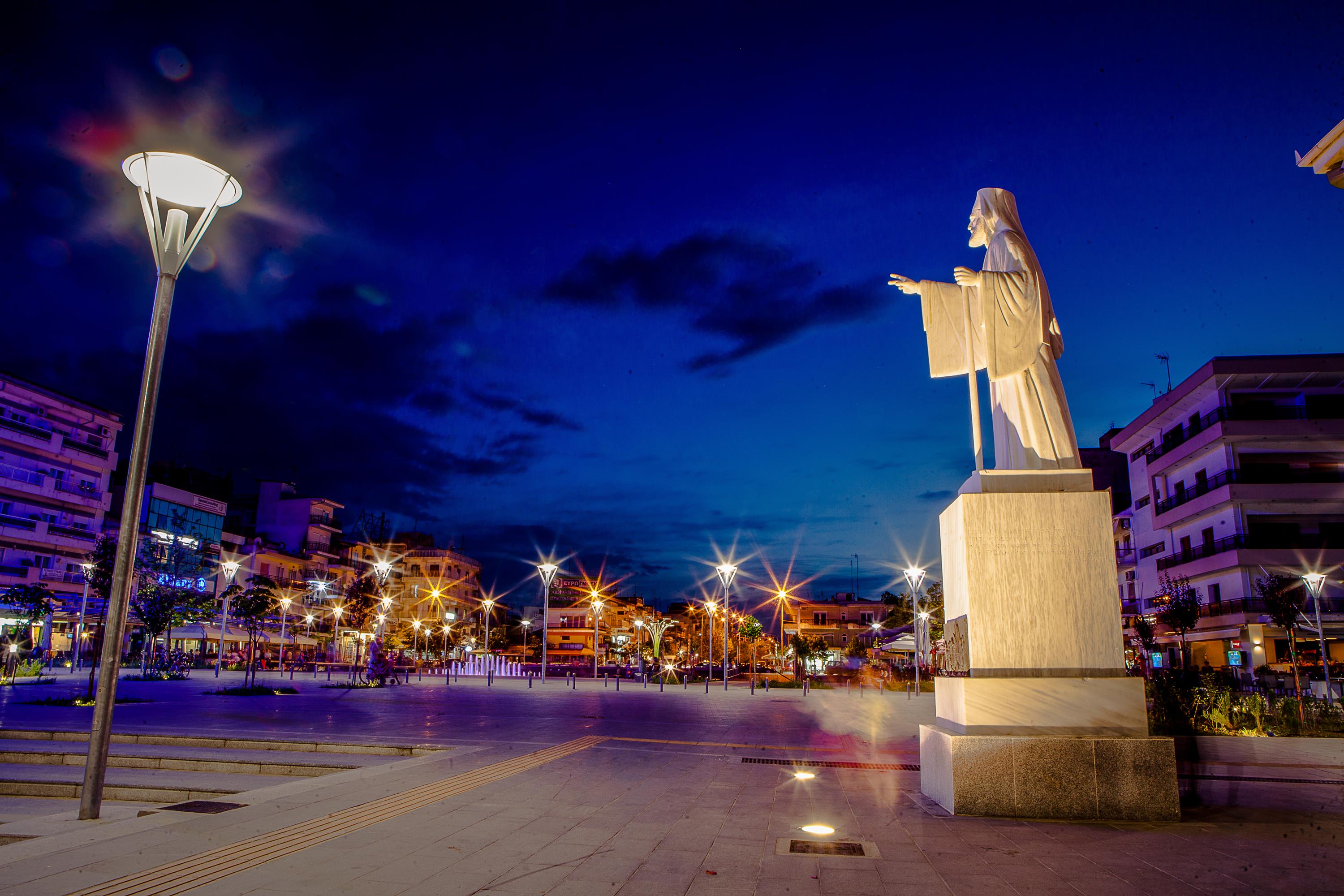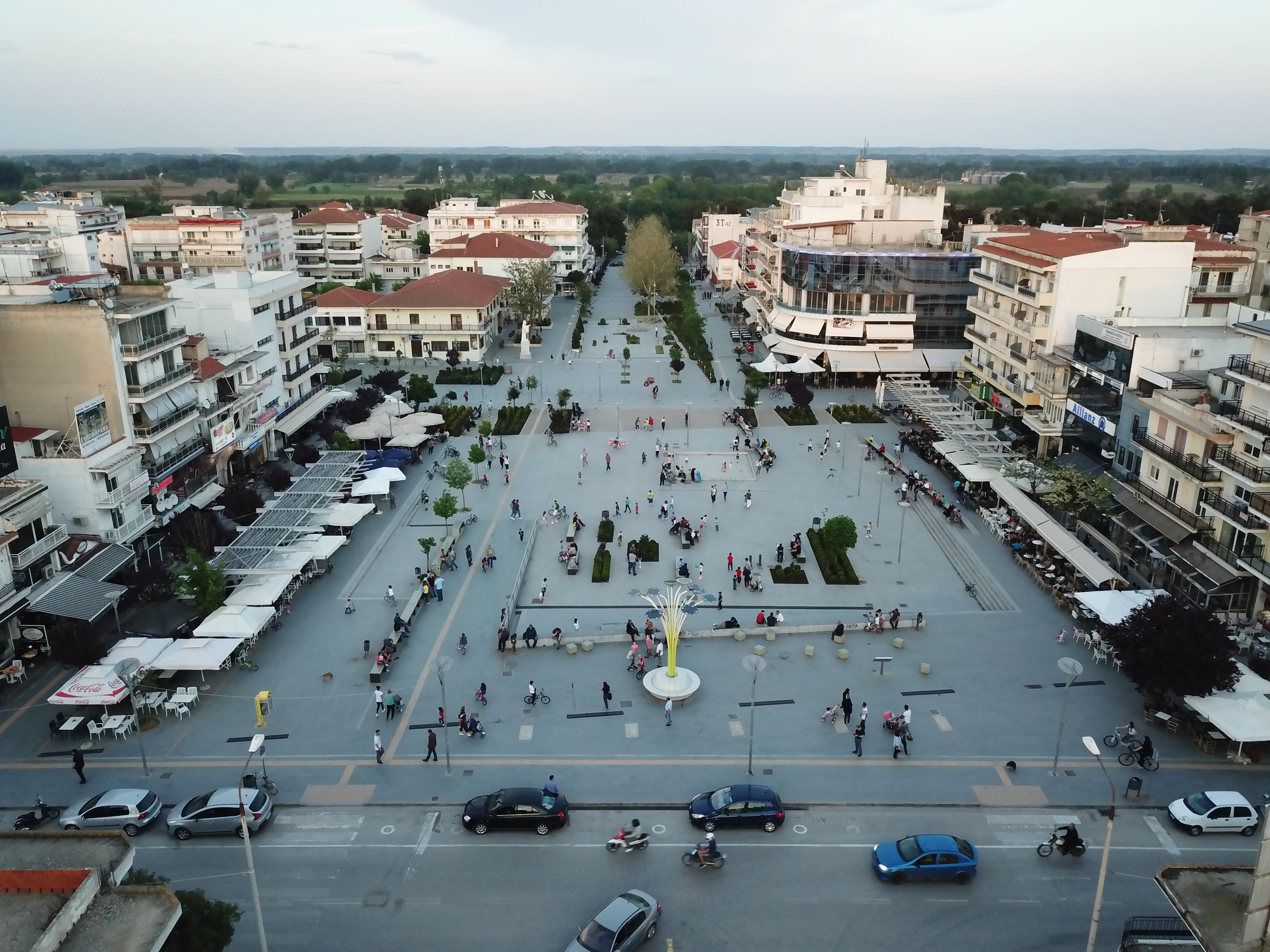 The city’s central square, harmoniously incorporated within the “Hippodameian” town plan, constitutes the heart of the commercial centre of the city and plays an important role within the financial and social life of the inhabitants. It is a space of high quality standards, welcoming visitors and inviting them to explore the sightseeing spots and to prolong their stay in the region.