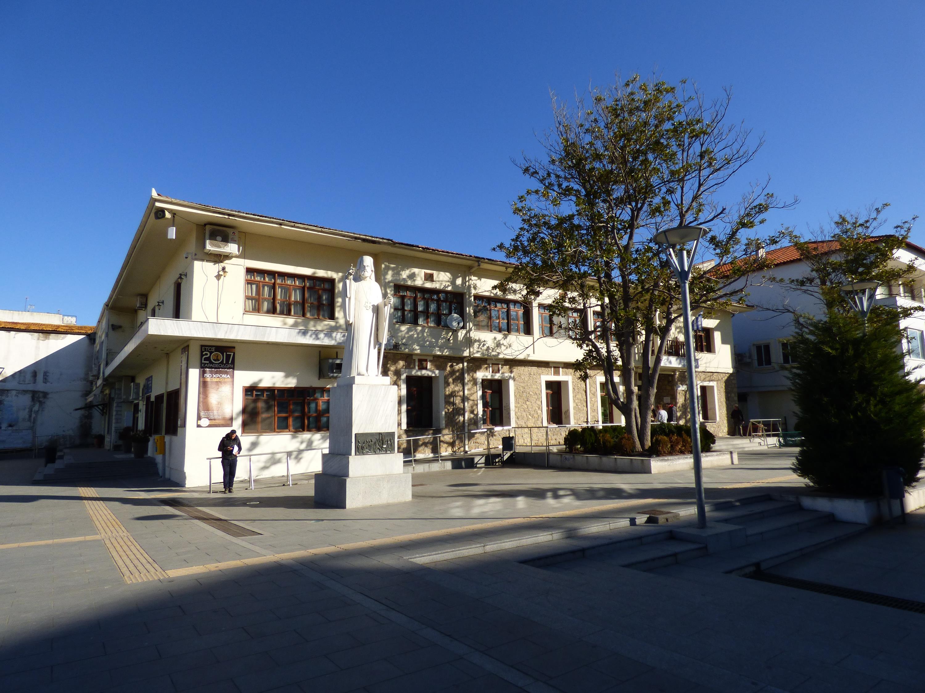 The Town Hall of Orestiada dominates the central square of the city. It was founded in 1953 under the mayor Athanasios Pantazides and constitutes a typical architectural specimen of those days. It covers a total surface of 1246m2, with a tiled roof, and hosts the central services of the municipality. Its halls are spacious and classy, decorated with marble and wood. In front of the Town Hall stands the statue of the martyred Patriarch Cyril VI. The surroundings of the Town Hall are decorated by trees, bushes and many rose trees, creating niches of freshness.