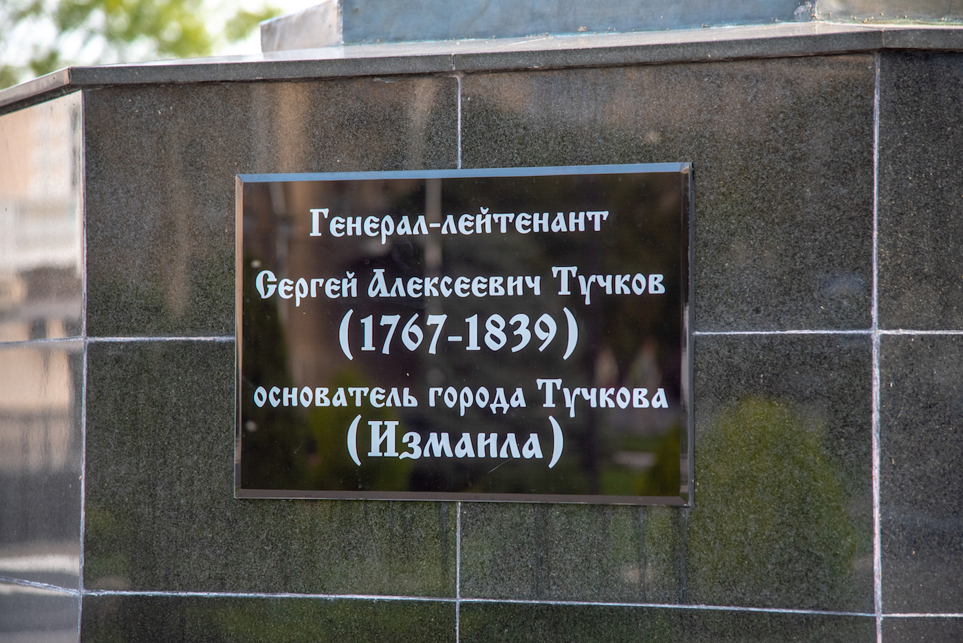 One of the relatively young monuments is nevertheless invaluable, because it is a monument to the founder of Izmail Sergei Tuchkov (1767 - 1839), a hero of the Patriotic War of 1812, erected in Izmail, Odessa region in 1997 at the intersection of Suvorov Ave. and Sverdlova str..
